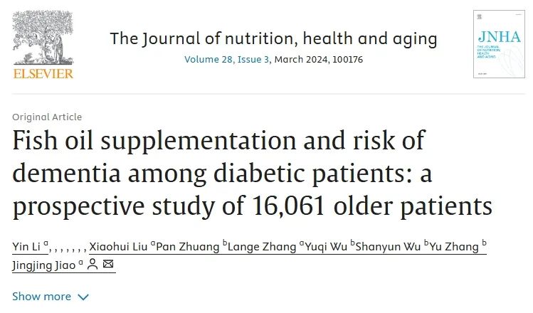 发表在《Nutrition, Health & Aging》期刊上的一篇论文通过对16061名60岁以上的老年人调查分析得出结论:鱼油补充能够降低老年糖尿病患者患痴呆的风险。